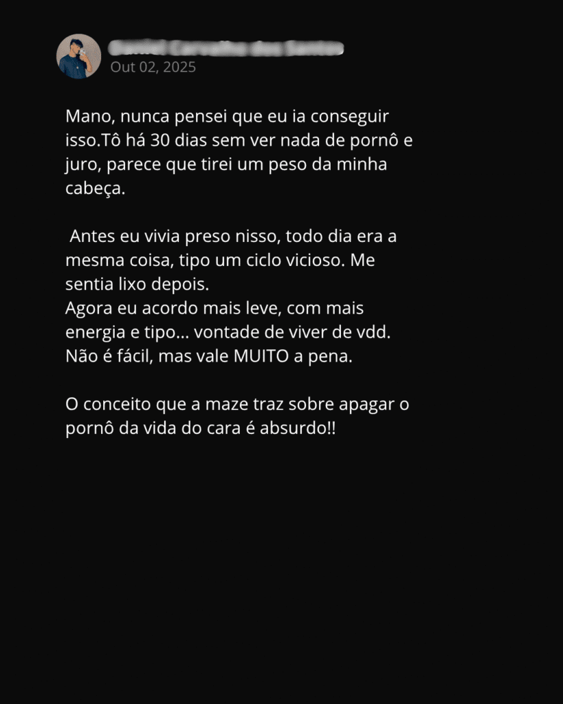 Corre atrás de sucesso, aprovação e prazer, mas sempre acaba voltando para o mesmo lugar: o vazio. A MAZE nasceu para quebrar esse ciclo, oferecendo um caminho real para jovens que querem se desenvolver como homens, dominar o corpo, a mente e a vida. Aqui, cada passo é uma escolha, e cada escolha aproxima você da sua melhor versão.